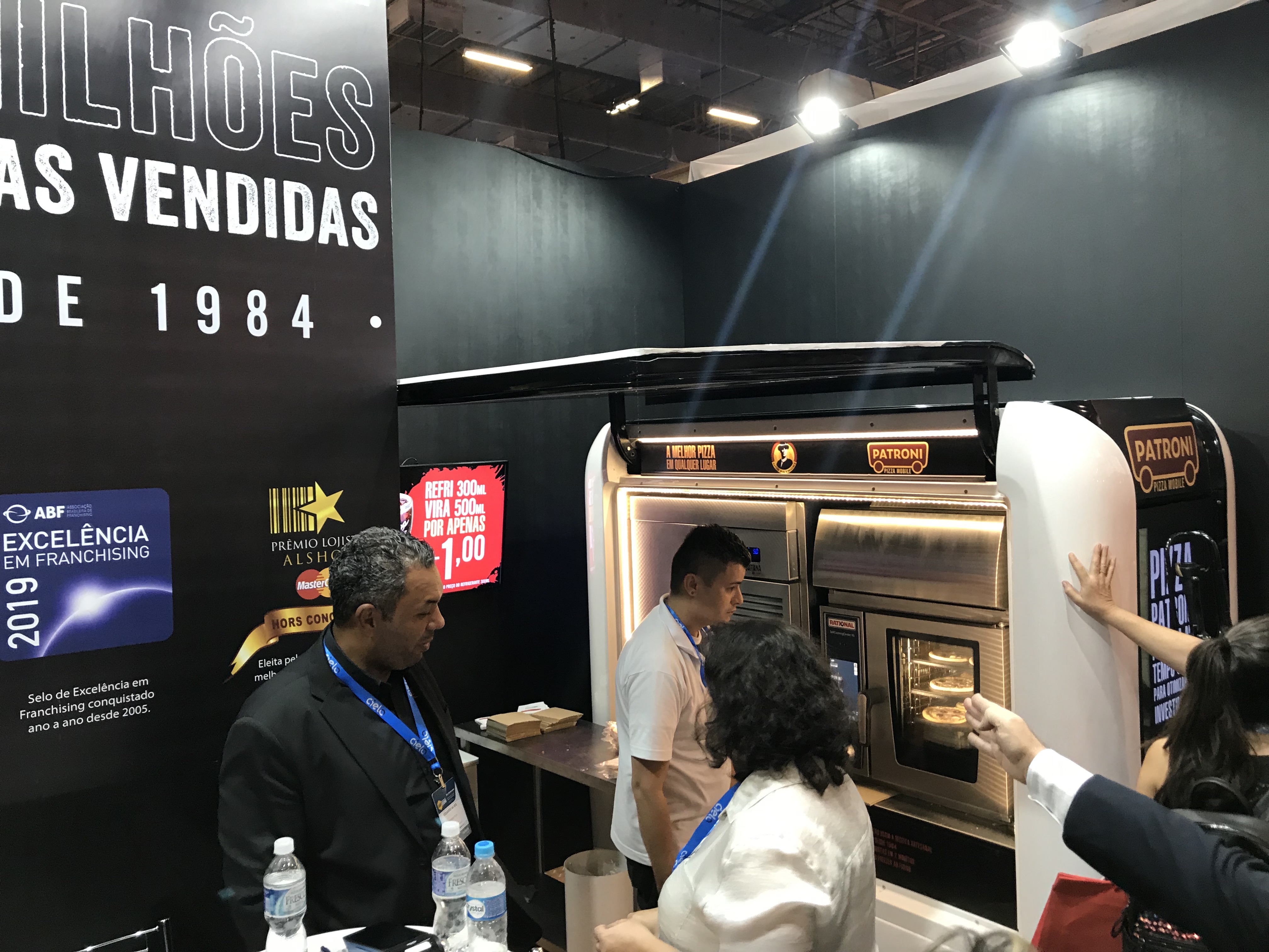 Fica evidente a rápida expansão de muitas empresas na feira. Muitos contratos sendo fechados ali mesmo. Novos franqueados, novas lojas, novas regiões atendidas. Para suportar esta rápida expansão, todo o processo operacional da franquia é transformado. Maquinários diferenciados, métodos de preparo, modelo de atendimento escalável, entre outros. Tudo devem estar alinhados com as metas de crescimento da franqueadora e franqueados. Abaixo, um dos estandes de uma rede de pizzarias (Patroni), expondo seu maquinário para o rápido preparo do produto.